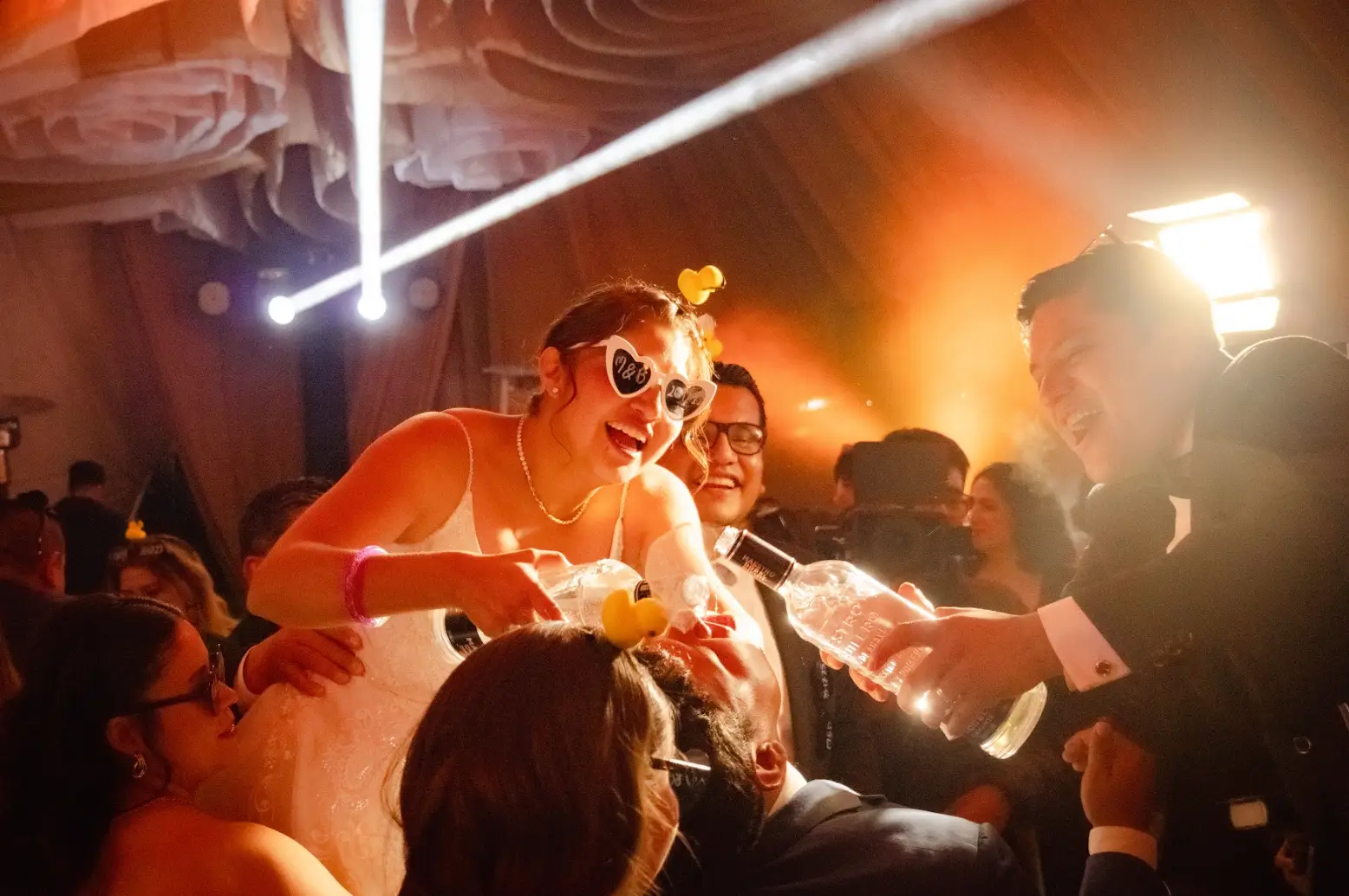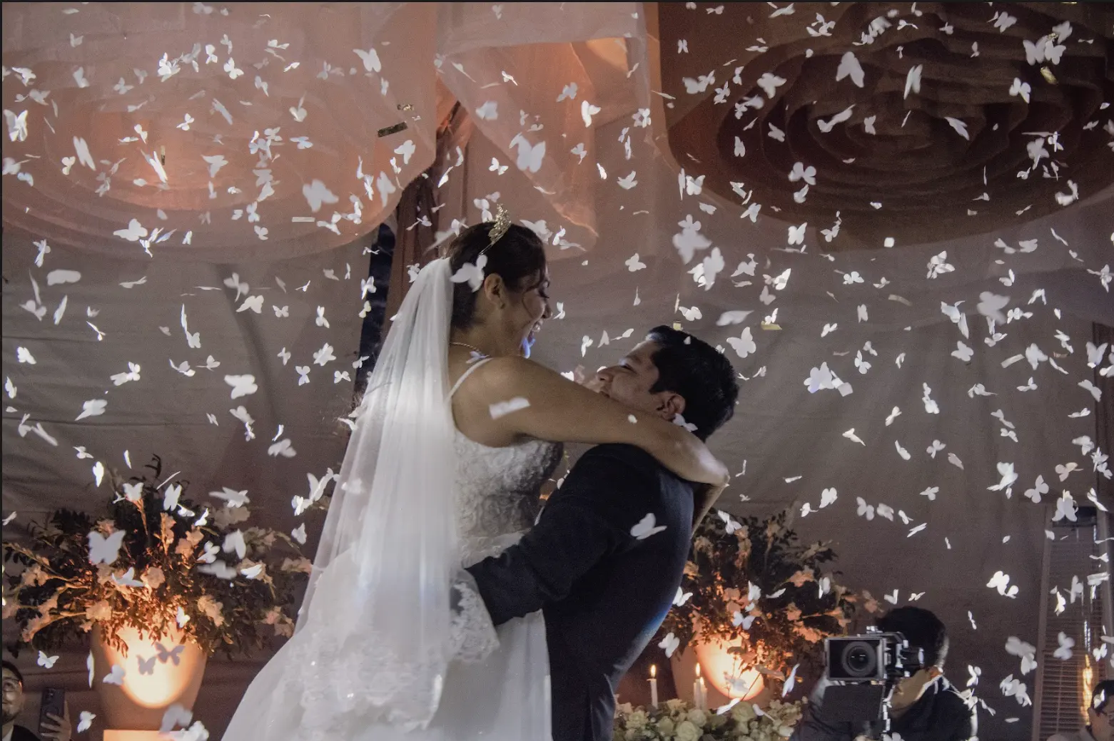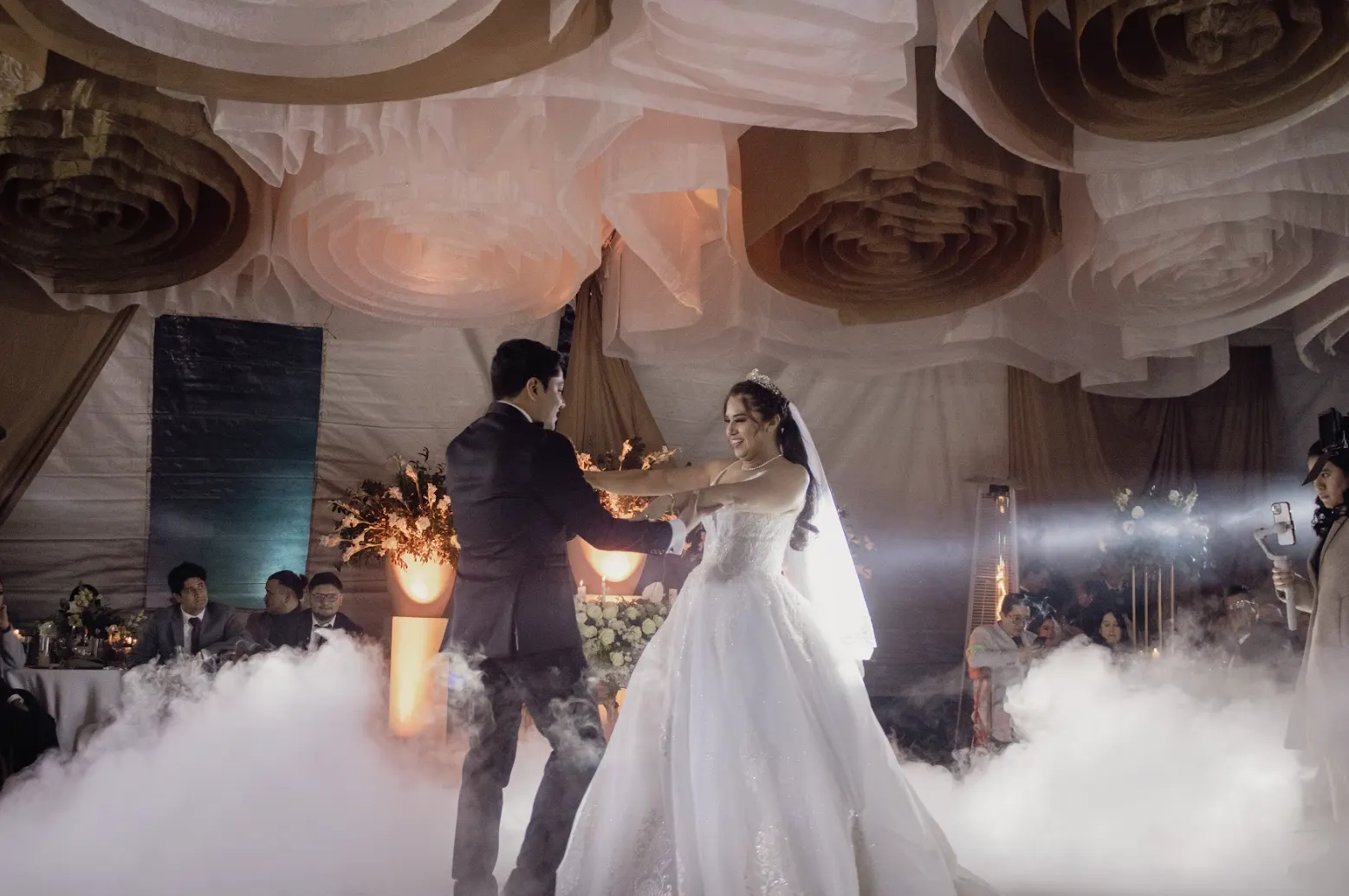 - 4 efectos especiales para vals (hielo seco, burbujas, bazuca de mariposas/papelitos, chisperos fríos)